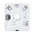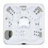 Eine Frau im Bikini und ein Mann in einem Whirlpool halten ein weißes Paneel mit sechs schwarzen Düsen fest.